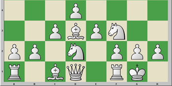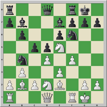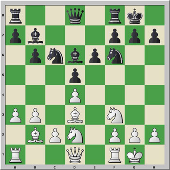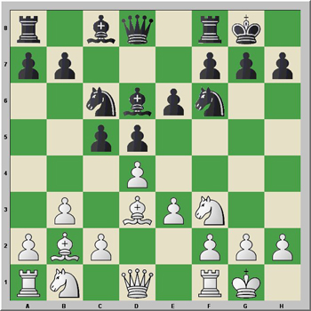 Ahora es bastante difícil que Sadler pueda encontrar una mejora de este último movimiento con un 10...Af5! Pero, vamos con la jugada del texto, que es, según nos dicen, probablemente inferior, y con esto termina la teoría establecida en esta línea. A partir de aquí, tanto Lane y Summerscale muestran múltiples ideas para las blancas.