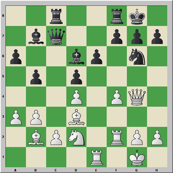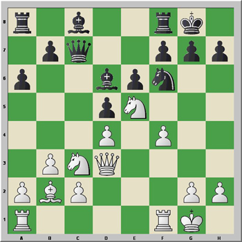 This is where Black falters. He has to play 17...Ce4!, highlighting White's fa ilure to protect c2 on his 16th move.