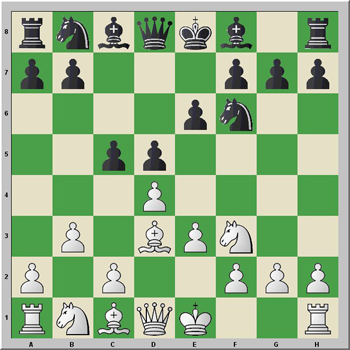 Se trata de una línea estándar en la que las negras han jugado ...Ae7, una jugada que algunos autores (Smith&Hall) dicen explícitamente que es mala para el Negro, mientras que otros indican implícitamente que no es crítica, ya que no es la línea "principal".